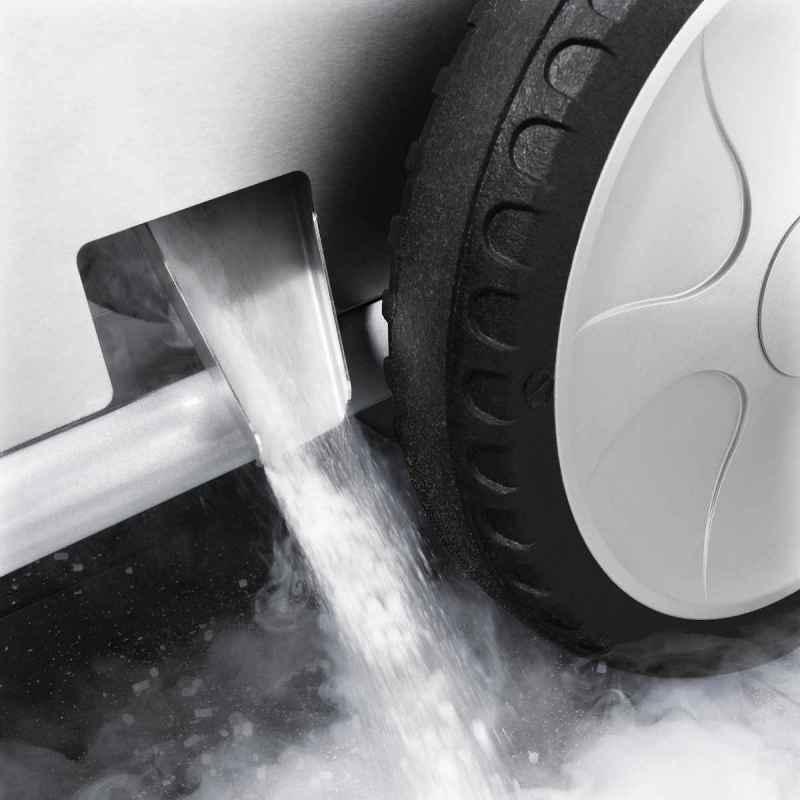 Przycisk z boku urządzenia "zrzut pozostałego suchego lodu" ze zbiornika. Zabezpiecza urządzenie przed zamarzaniem.