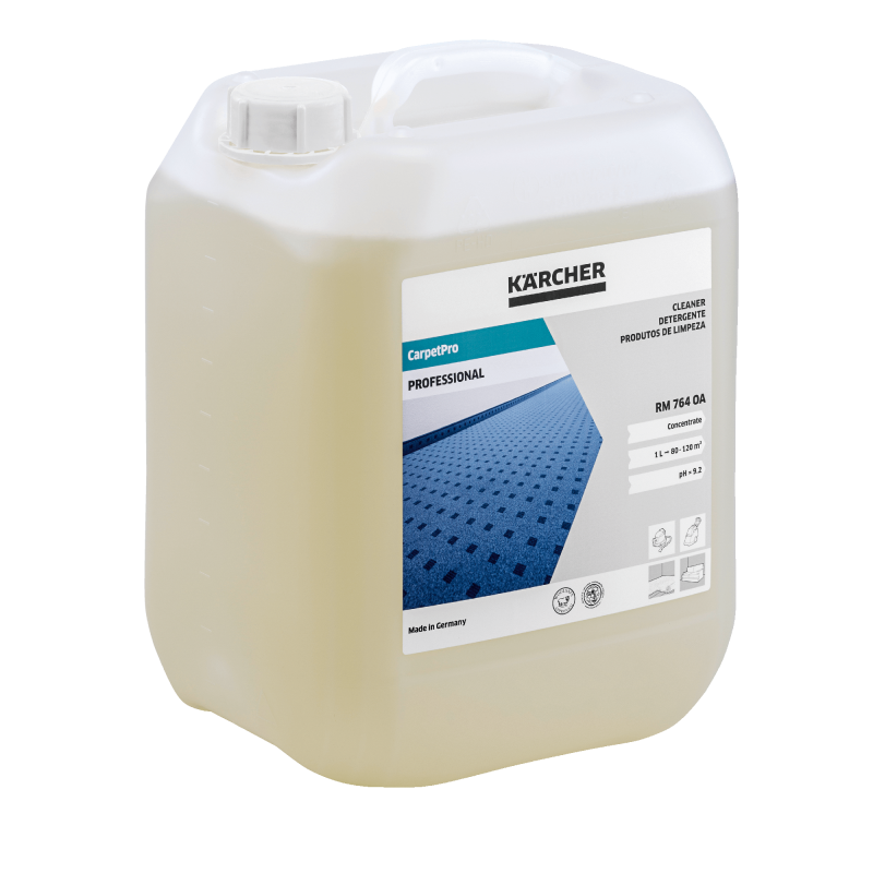 Środek czyszczący CarpetPro RM 764 OA, który otrzymał certyfikat Woolsafe, a zatem jest odpowiedni również do włókien naturalnych, zapewnia imponujące rezultaty podczas czyszczenia wszystkich tekstylnych pokryć podłogowych. Niezależnie od tego, czy są to włókna syntetyczne, czy naturalne, silny, gotowy do użycia środek do głębokiego czyszczenia niezawodnie usuwa olej, tłuszcz i zabrudzenia mineralne, a także nieprzyjemne zapachy, takie jak dym tytoniowy, pot lub mocz. Środek CarpetPro Cleaner RM 764 OA idealnie nadaje się do czyszczenia budynków przy użyciu urządzeń ekstrakcyjnych Puzzi, a także dwustopniowych urządzeń do czyszczenia wykładzin.