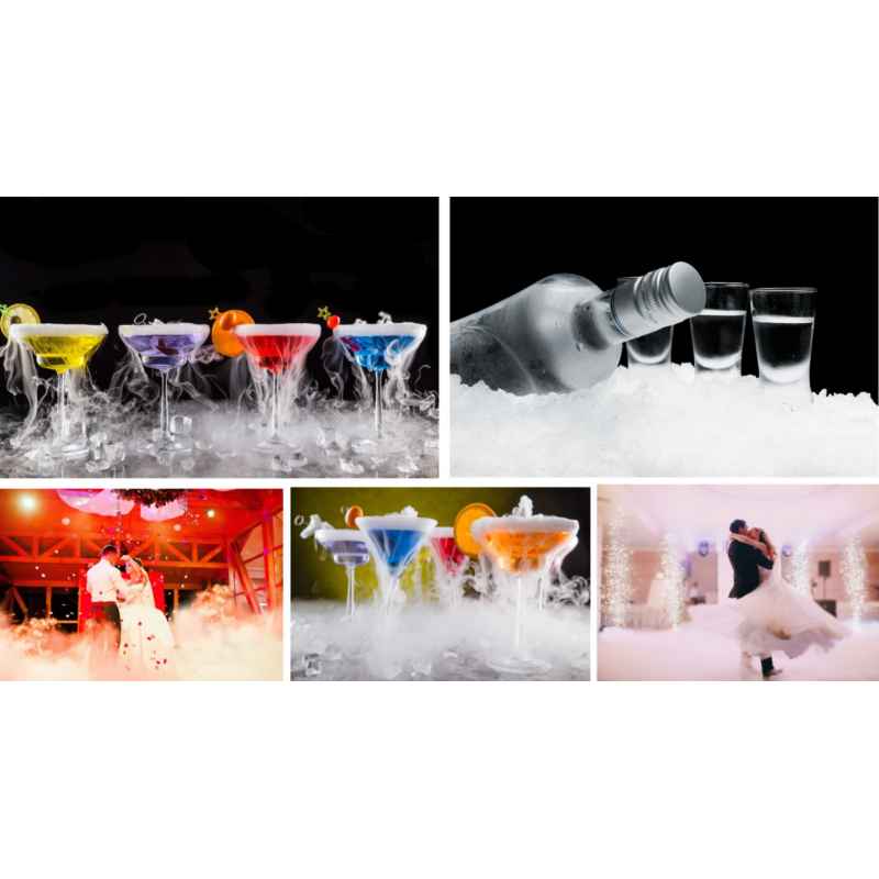 Idealnie sprawdzi się w różnorodnych zastosowaniach, które wymagają intensywnego chłodzenia oraz efektownej prezentacji. Doskonały do wykorzystania w większych pojemnikach, takich jak wiadra na lód czy chłodziarki, pozwala na dłuższe utrzymanie niskiej temperatury napojów i potraw. Dzięki swojemu rozmiarowi, granulat jest również chętnie wykorzystywany na weselach, gdzie znajduje zastosowanie podczas pierwszego tańca aby zapełnić ją pięknymi chmurami na parkiecie. Warto również wspomnieć, że suchy lód w tej formie doskonale nadaje się do transportu wrażliwych produktów, zapewniając im bezpieczeństwo i świeżość podczas dłuższej drogi.