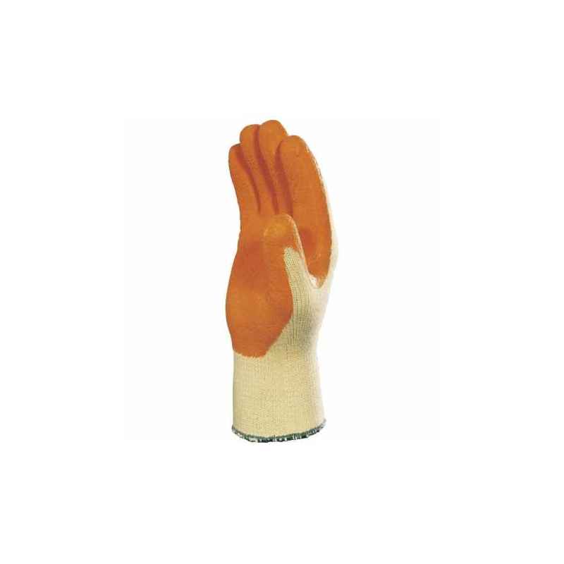 Strona chwytna i końcówki palców zostały pokryte powłoką z naturalnego lateksu o grubości 1,7 mm, która poprawia przyczepność oraz zwiększa odporność na przetarcia i uszkodzenia mechaniczne. Rękawice wykonano w ściegu 10, co zapewnia precyzyjne dopasowanie i wysoki komfort noszenia przez dłuższy czas.