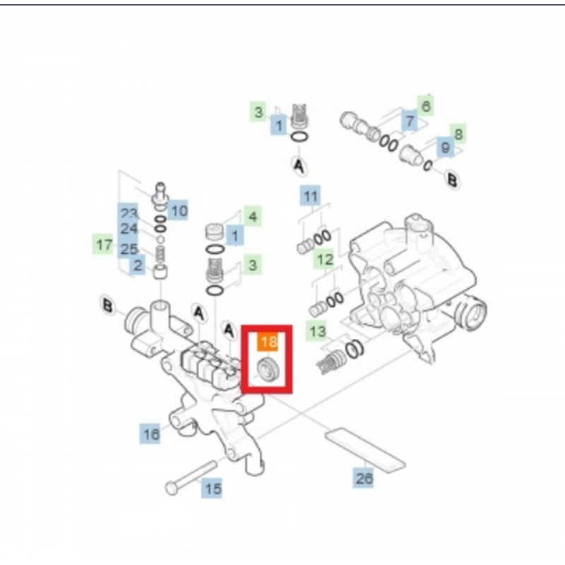 Zestaw części do głowicy sterującej pasujących do modeli myjek ciśnieniowych z serii K4 i K5.