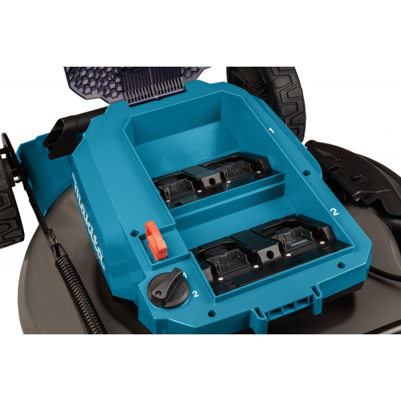 - Akumulatorowa kosiarka do trawy o szerokości koszenia 53,4 cm zasilana 2 akumulatorami LXT 18V