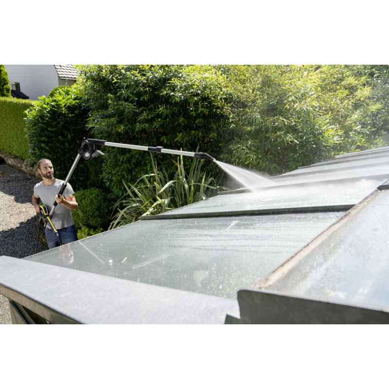Teleskopowa lanca spryskująca sprawia, że nawet trudnodostępne miejsca pod elewacją, można wyczyścić szybko i bez najmniejszego wysiłku. Przegub z możliwością regulacji w zakresie 180 stopni to kolejna zaleta, która umożliwia czyszczenie ogrodów zimowych, skośnych dachów oraz wiat samochodowych. Dzięki zastosowaniu nakładki do czyszczenia elewacji i szkła, każde nawet trudno dostępne miejsce można dokładnie i skutecznie wyczyścić.: Cztery wysokociśnieniowe dysze umożliwiają usuwanie uporczywych zanieczyszczeń z różnych powierzchni.