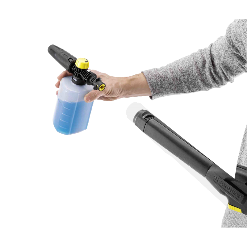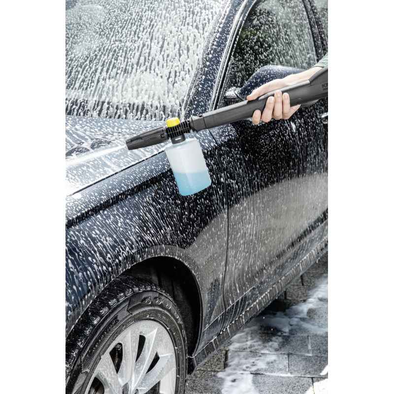Dysza pianowa FJ 6 z dodatkową silną pianą do czyszczenia wszystkich powierzchni, takich jak farba, szkło i kamień. Idealna do pojazdów, ogrodów zimowych, mebli ogrodowych, elewacji, schodów, przyczep kempingowych, chodników, ścian, żaluzji, tarasów, podjazdów itp. Pojemność pojemnika około 0,6 litrów. Wlać detergent Kärcher bezpośrednio do dyszy pianowej, podłączyć dyszę do pistoletu i nałożyć pianę. Dawkę detergentu można z łatwością regulować na dyszy pianowej (żółte pokrętło). Poziom strumienia można regulować według wymagań. Pasuje do wszystkich myjek ciśnieniowych w klasach K 2 do K 7. Idealna do stosowania ze środkiem Kärcher Ultra Foam.