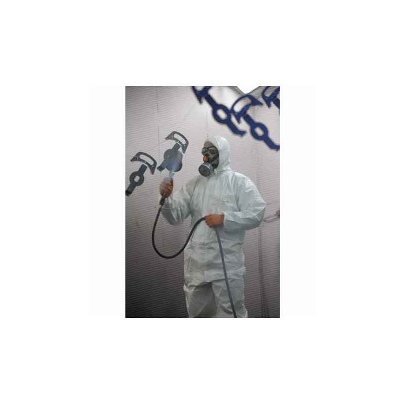 Wysokiej jakości, jednorazowa odzież ochronna przeznaczona do pracy w wymagających warunkach. Wykonany z mikroporowatej włókniny walcowanej Deltatek® 5000 (63 g/m²), gwarantuje skuteczną ochronę przed cząstkami stałymi, ciekłymi oraz substancjami chemicznymi, a jednocześnie pozostaje lekki i oddychający.