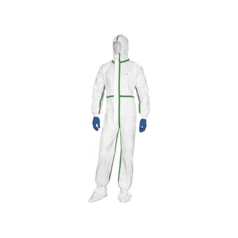 Dzięki usztywnionym i taśmowanym szwom, kombinezon skutecznie chroni przed cieczami i aerozolami chemicznymi (typ 4), a jego antyelektrostatyczne właściwości zapobiegają gromadzeniu się ładunków elektrostatycznych. Elastyczne wykończenia przy kapturze, nadgarstkach, talii i kostkach zapewniają idealne dopasowanie i pełną swobodę ruchu.