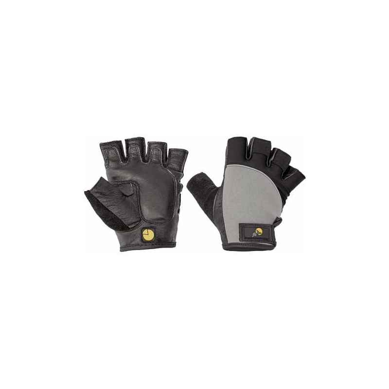 Grzbiet rękawicy wykonano z elastycznych materiałów — Lycry i neoprenu — dzięki czemu rękawice idealnie dopasowują się do dłoni, nie krępując ruchów. Model bez palców gwarantuje maksymalną kontrolę i wentylację, a ściągany mankiet z zapięciem na rzep umożliwia szybkie dopasowanie i stabilne trzymanie rękawicy na dłoni.