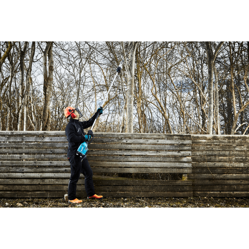 - Akumulatorowa okrzesywarka na wysięgniku zasilana 2 akumulatorami 18 V