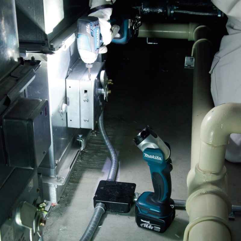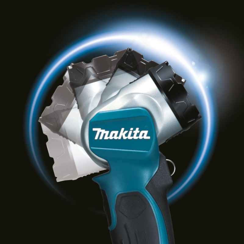Ledowa latarka DML802 MAKITA o wysokiej luminacji 180 lm. Kompaktowa głowica przestawiana w 12 pozycjach od -60º - 110º.