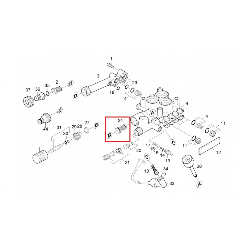 Gniazdo zaworu pasujące do modeli myjek wysokociśnieniowych z podgrzewaniem z serii HDS.