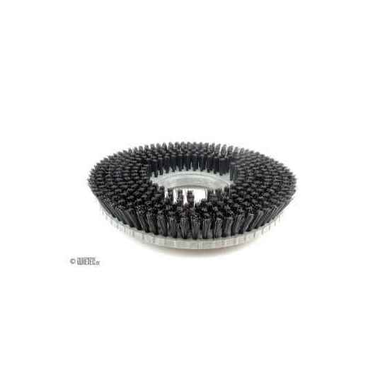 Szczotka do szorowarek Nilfisk z twardym włosiem z polipropylenu, średnica zewnętrzna 380 mm i średnica włosa D3 1 mm. Idealna do efektywnego czyszczenia twardych powierzchni, zapewnia długotrwałą wydajność i skuteczność w usuwaniu zabrudzeń