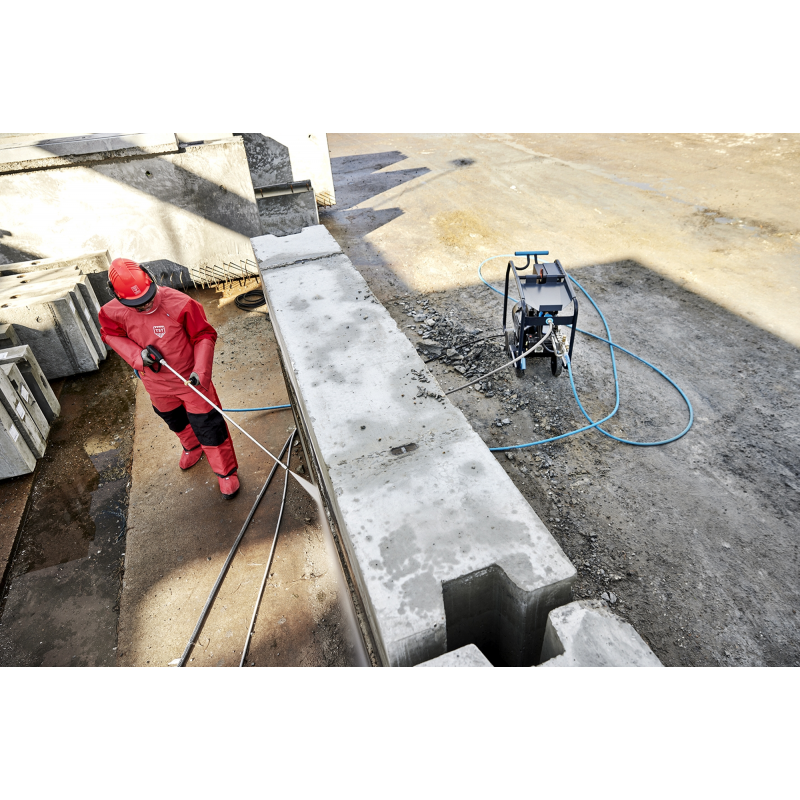 Mocny strumień wody pod wysokim ciśnieniem: Ciśnienie od 350 do 500 bar umożliwia skuteczne usuwanie trudnych zabrudzeń.