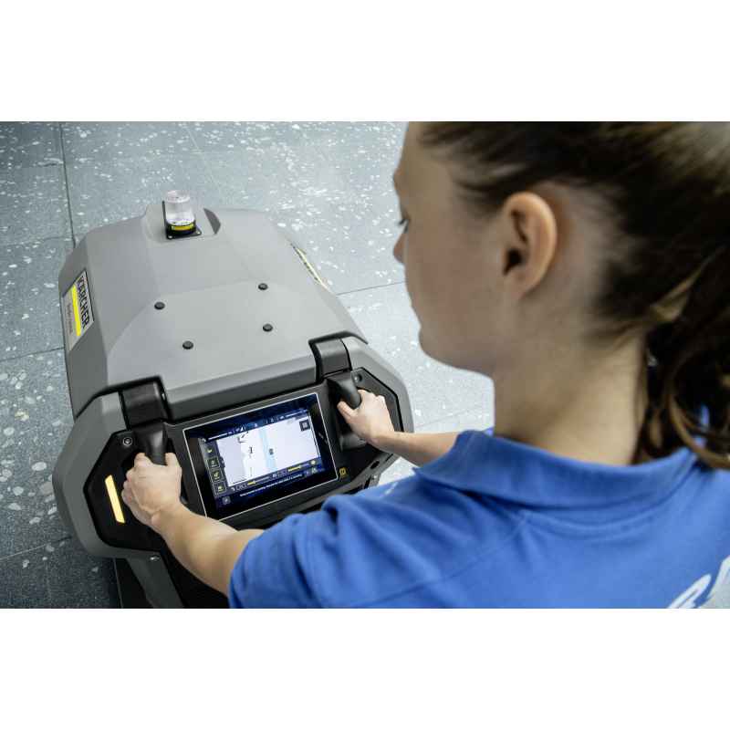 KIRA B 50 posiada intuicyjny dotykowy panel informacyjny, który ułatwia obsługę urządzenia. Panel oferuje tryb mapowania oraz funkcję informowania o tym, które obszary zostały już umyte. Na monitorze wyświetlane są wszystkie kluczowe informacje, co pozwala na łatwe sterowanie robotem i pełną kontrolę nad procesem czyszczenia. Znajdziemy tam między innymi możliwość dostosowania ilości podawanej wody, chemii czy informacje o stanie naładowania akumulatorów.