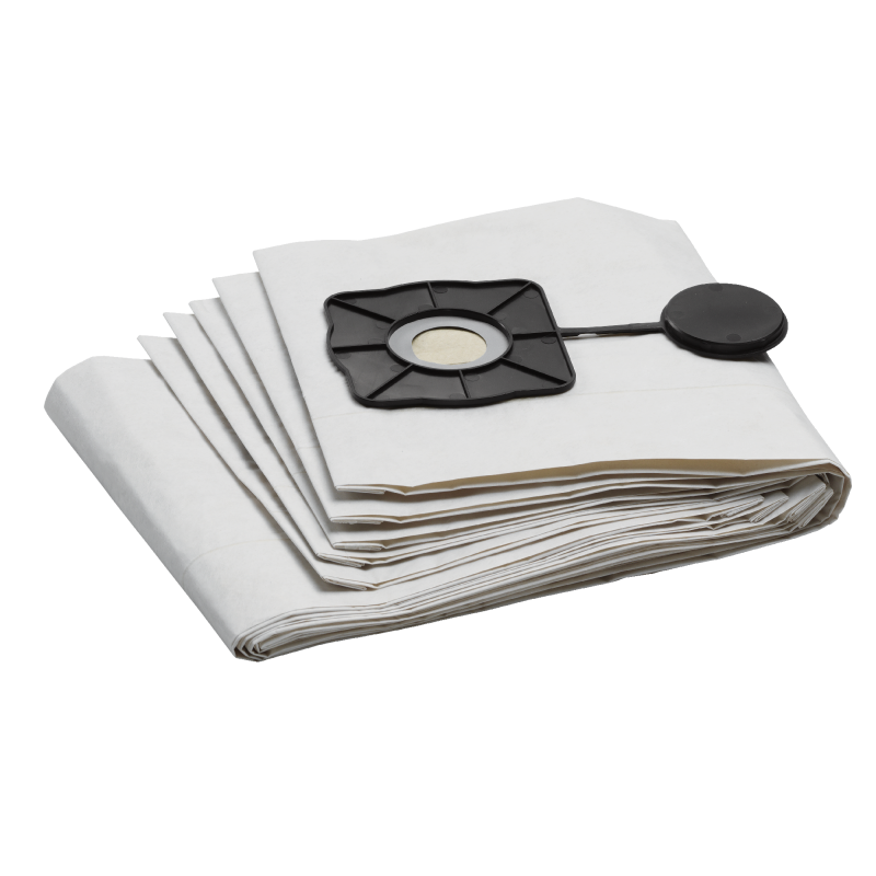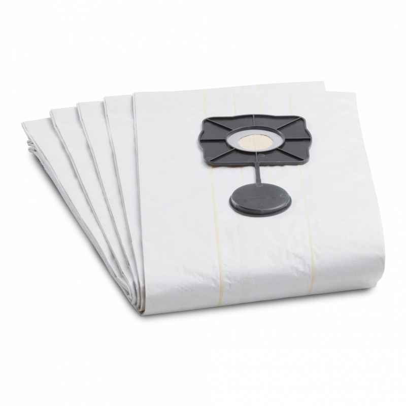 Wysokiej klasy papierowe worki filtracyjne o klasie pyłu M, odpowiednie do odkurzaczy uniwersalnych Kärcher. Zawartość: 5-pak.