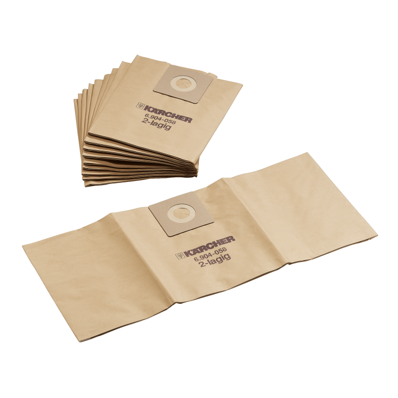 Wysokiej klasy papierowe worki filtracyjne o klasie pyłu M, odpowiednie do odkurzaczy do pracy na sucho Kärcher. Zawartość: 10-pak.