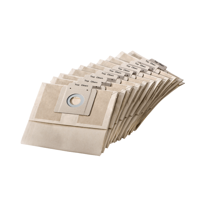 Wysokiej klasy papierowe worki filtracyjne o klasie pyłu M, odpowiednie do odkurzaczy do pracy na sucho Kärcher. Zawartość: 10-pak.