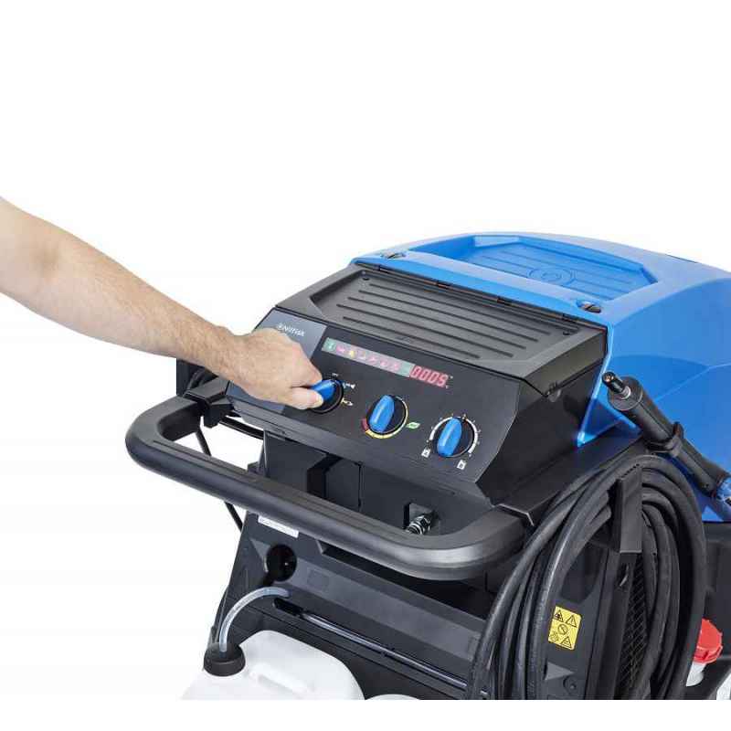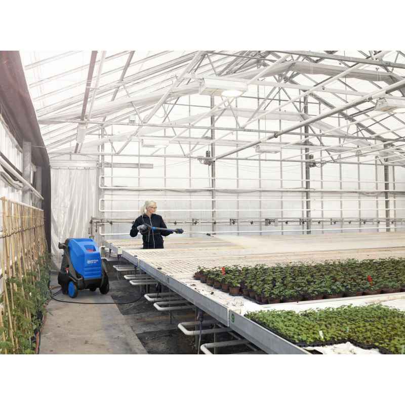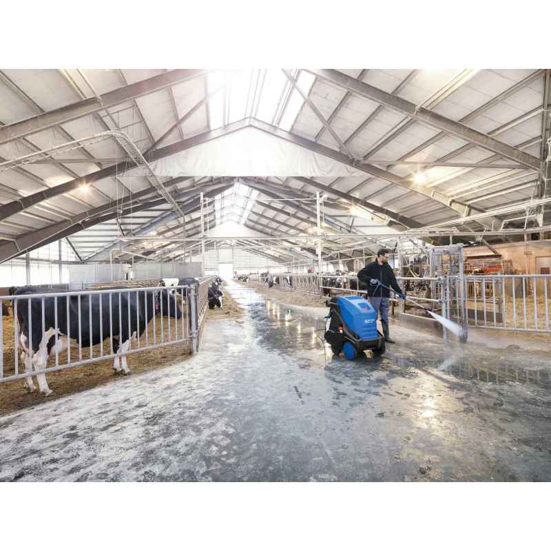 - Wysoka efektywność czyszczenia: Gorąca woda i system EcoPower znacznie przyspieszają proces czyszczenia, co sprawia, że myjka jest idealna do usuwania trudnych zabrudzeń, jak oleje, tłuszcze czy substancje bogate w białko.