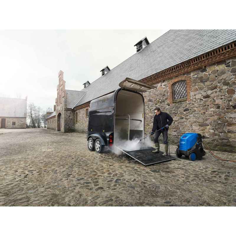 MH 4M to innowacyjna gorącowodna myjka wysokociśnieniowa klasy średniej, oferująca wytrzymałą konstrukcję, pompę NA5 z 3 ceramicznymi tłokami oraz 4-biegunowy silnik.