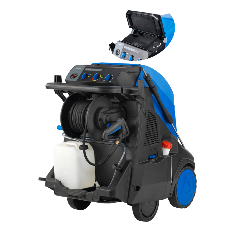 Kocioł EcoPower: Zapewnia wysoką wydajność (92-93%) i oszczędności paliwa (nawet do 15% w porównaniu do konkurencyjnych produktów), co skutkuje niższymi kosztami eksploatacyjnymi.Wydajność: Przepływ wody do 1000 l/h oraz temperatura wody do 90°C, a para może osiągnąć aż 150°C, co pozwala na skuteczne czyszczenie nawet w trudnych warunkach.
